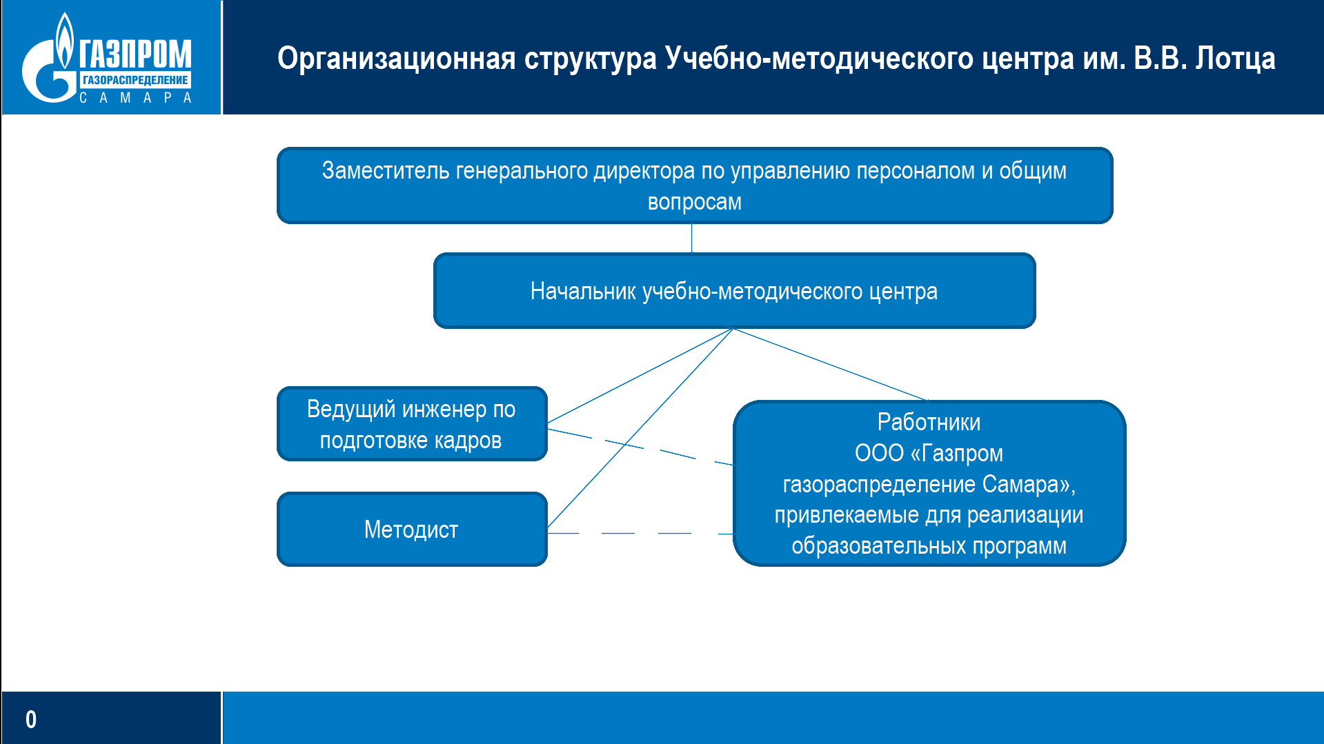 Структуру и штатное расписание Учебно-методического центра им. В.В. Лотца утверждает генеральный директор ООО «Газпром газораспределение Самара» с учетом объема образовательного процесса и профессиональной подготовки работников Общества.